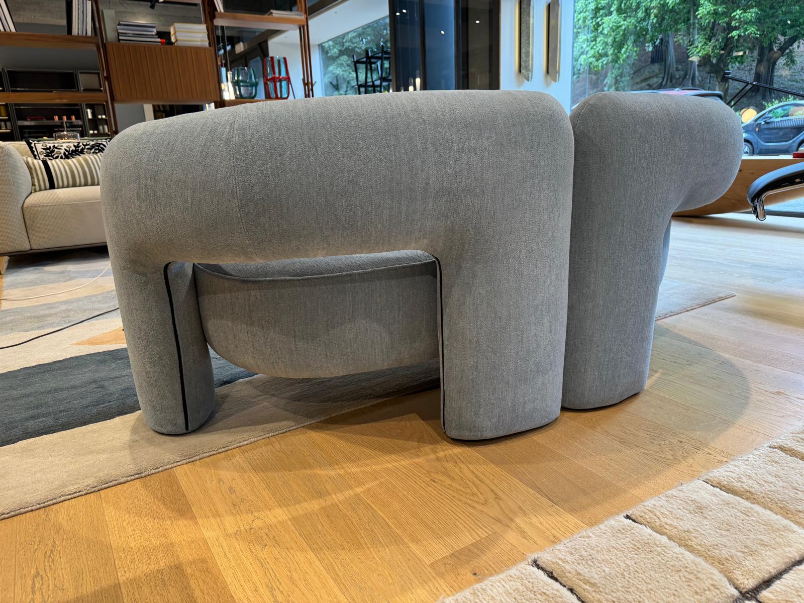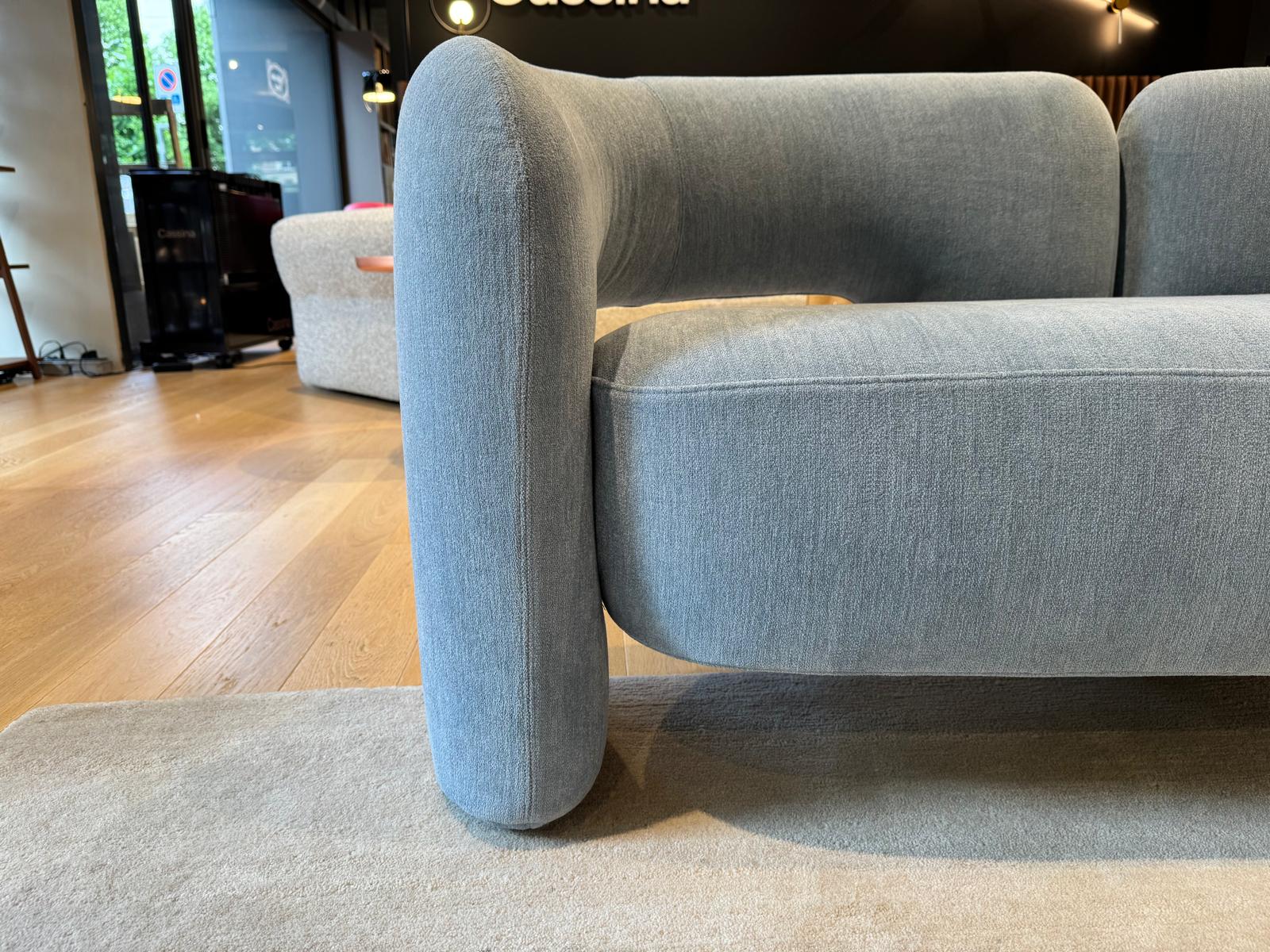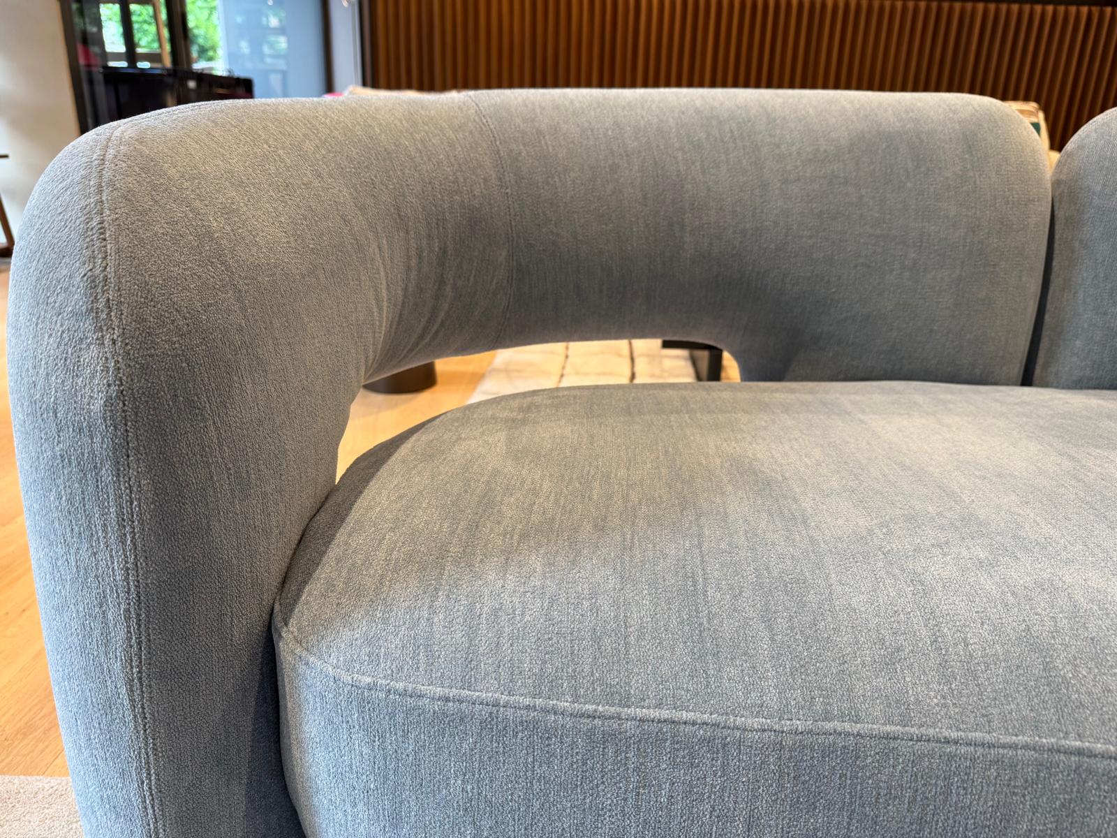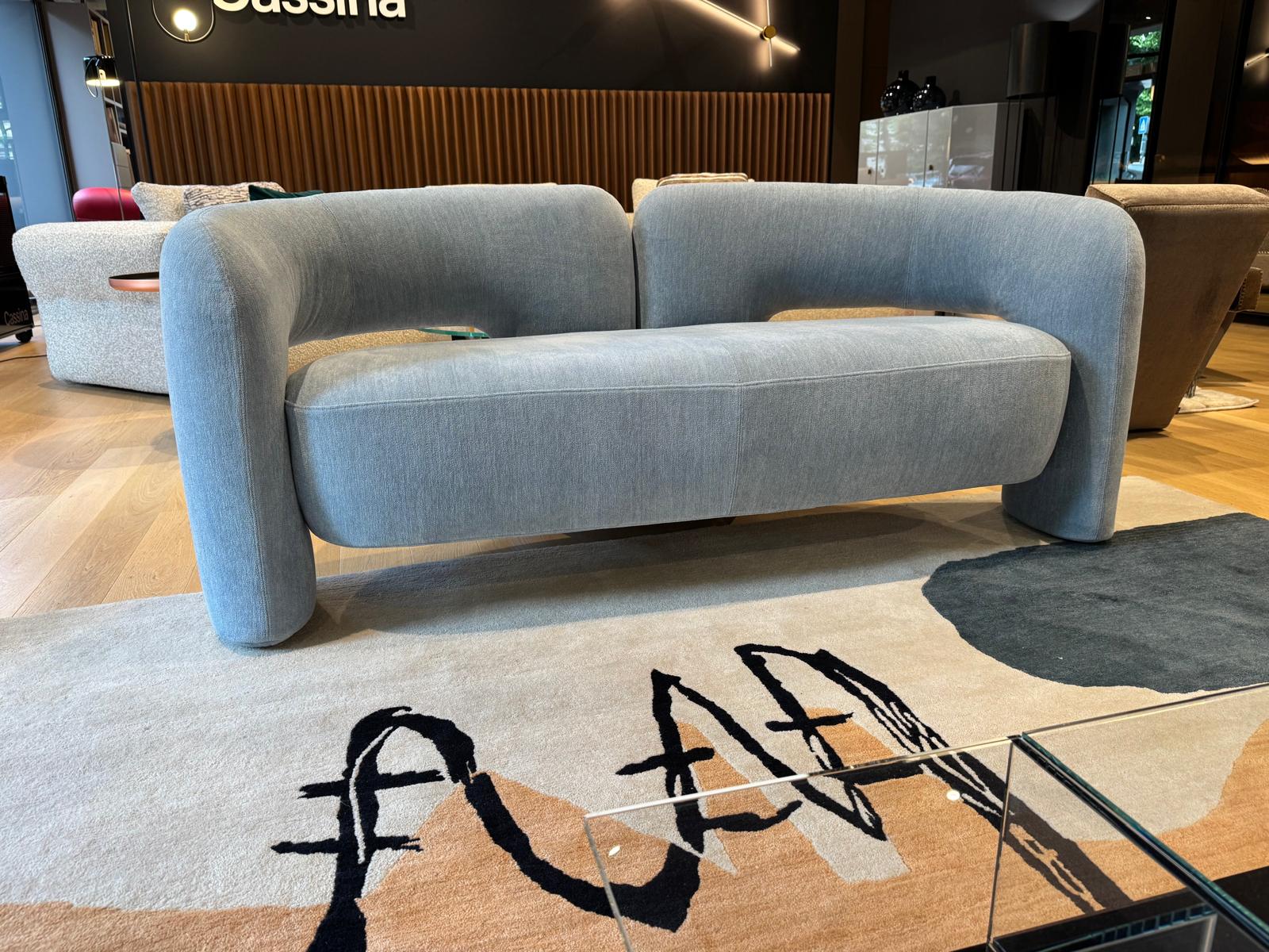 Divano Dudet Sofa, di Cassina, in Tessuto Fox (Cat F) color Cielo e zip nera. Il divano mantiene il caratteristico design della sedia della stessa collezione disegnata da Patricia Urquiola .