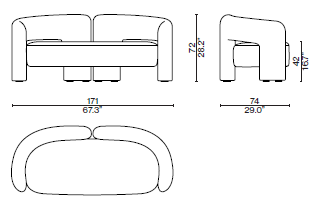 Lunghezza 171 cm, profondità 74 cm, altezza 72 cm
