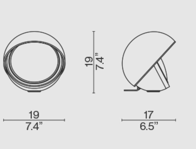 L’estro di Ico Parisi in una creazione mimetica e giocosa. Il design di questa lampada da tavolo in alluminio satinato è studiato per aprirsi e chiudersi richiamando il movimento dell’occhio, grazie a un sofisticato sistema di rotazione ingegnerizzato e miniaturizzato che permette di regolare l’angolo di emissione della luce. Cassina ha implementato un interruttore capacitivo per modulare l’intensità della luce con due diverse modalità, tenendo il dito premuto per un risultato graduale oppure tramite tocco. La lampada ha le dimensioni di cm 19x17xH19.