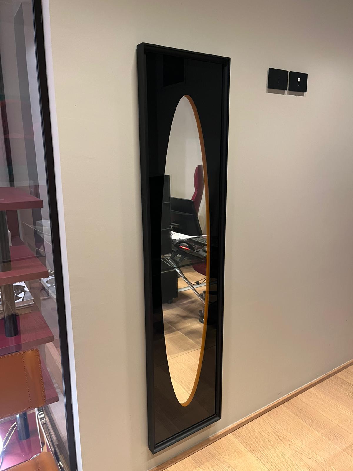 Specchio rettangolare Deadline di Cassina, disegnato da Ron Gilad, con cornice in frassino tinto nero. Dimensioni: cm 40x5xH170.