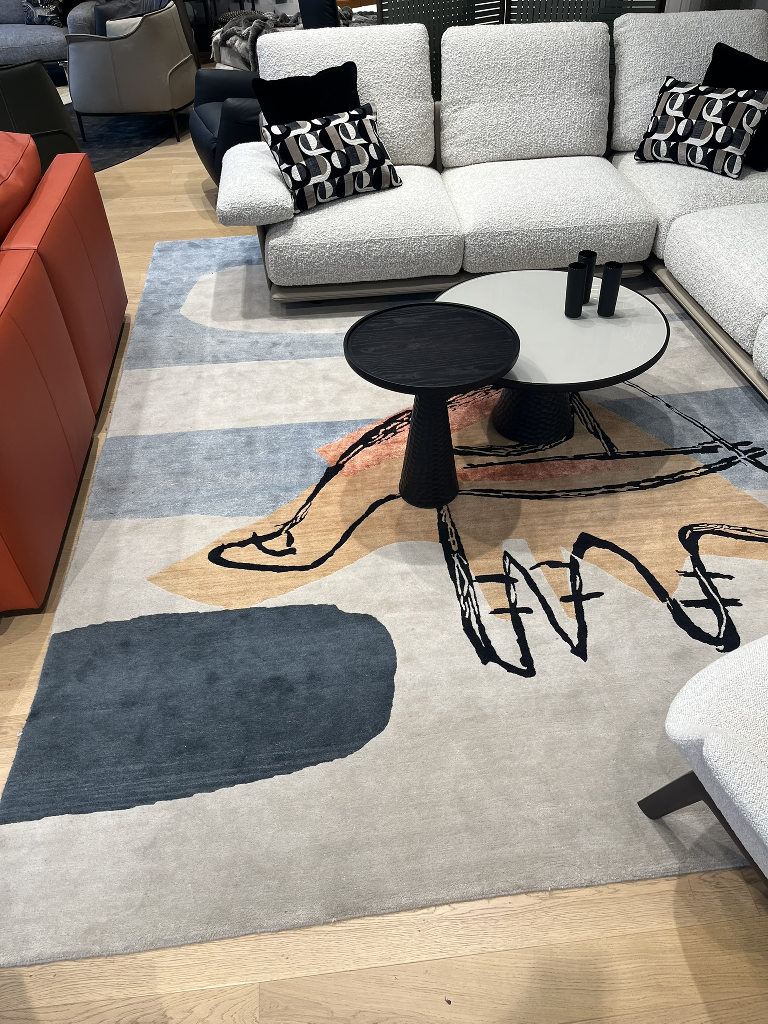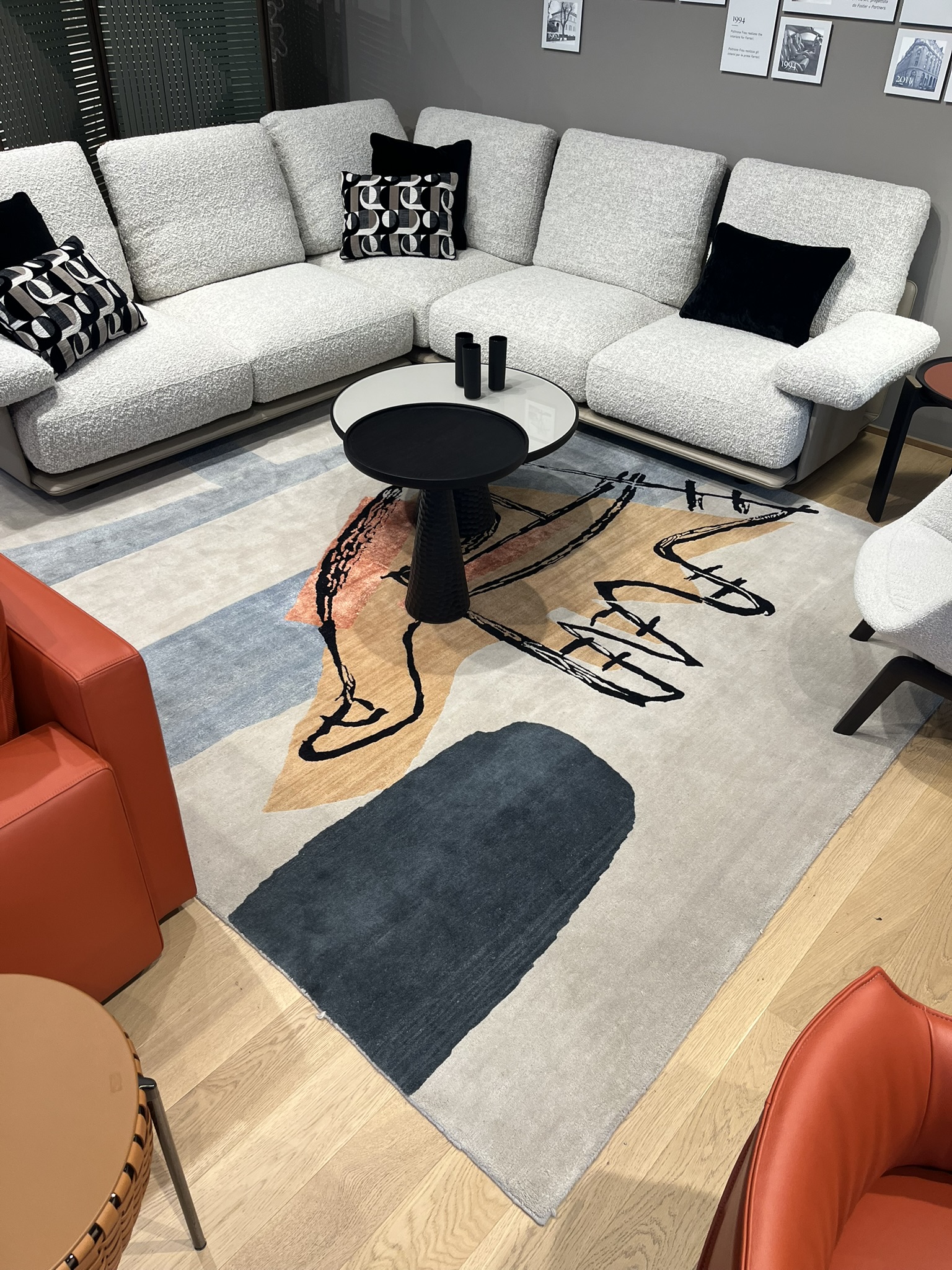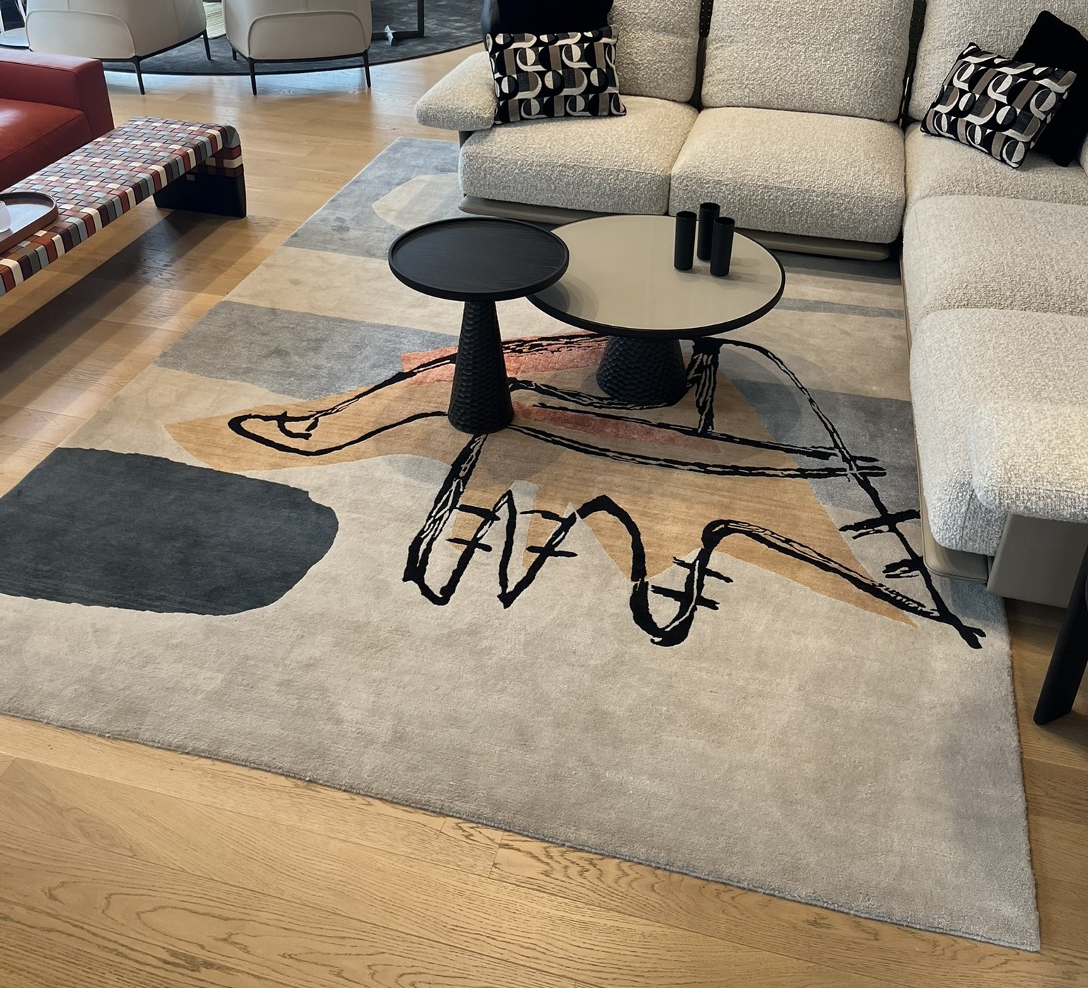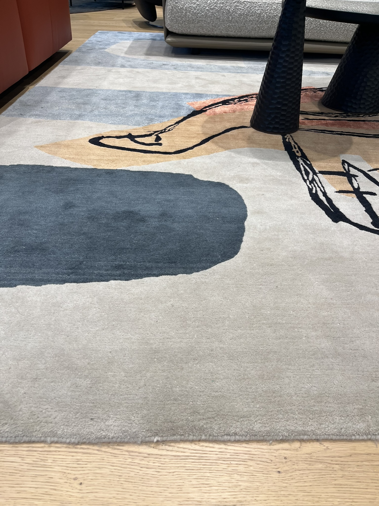 Tappeto La main ouverte di Cassina, disegnato da Le Corbusier, annodato a mano in lana New Zeland al 90% e viscosa 10%. Il tappeto misura cm 250×350.