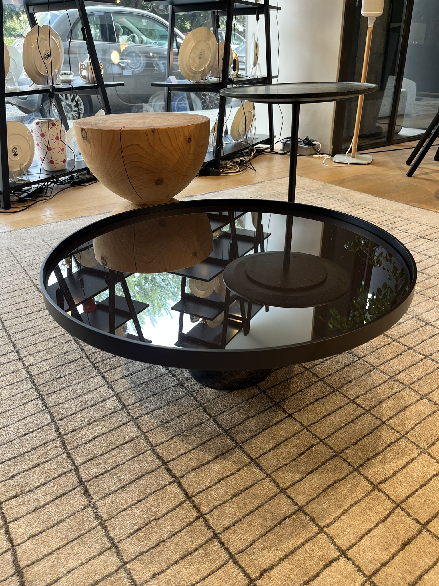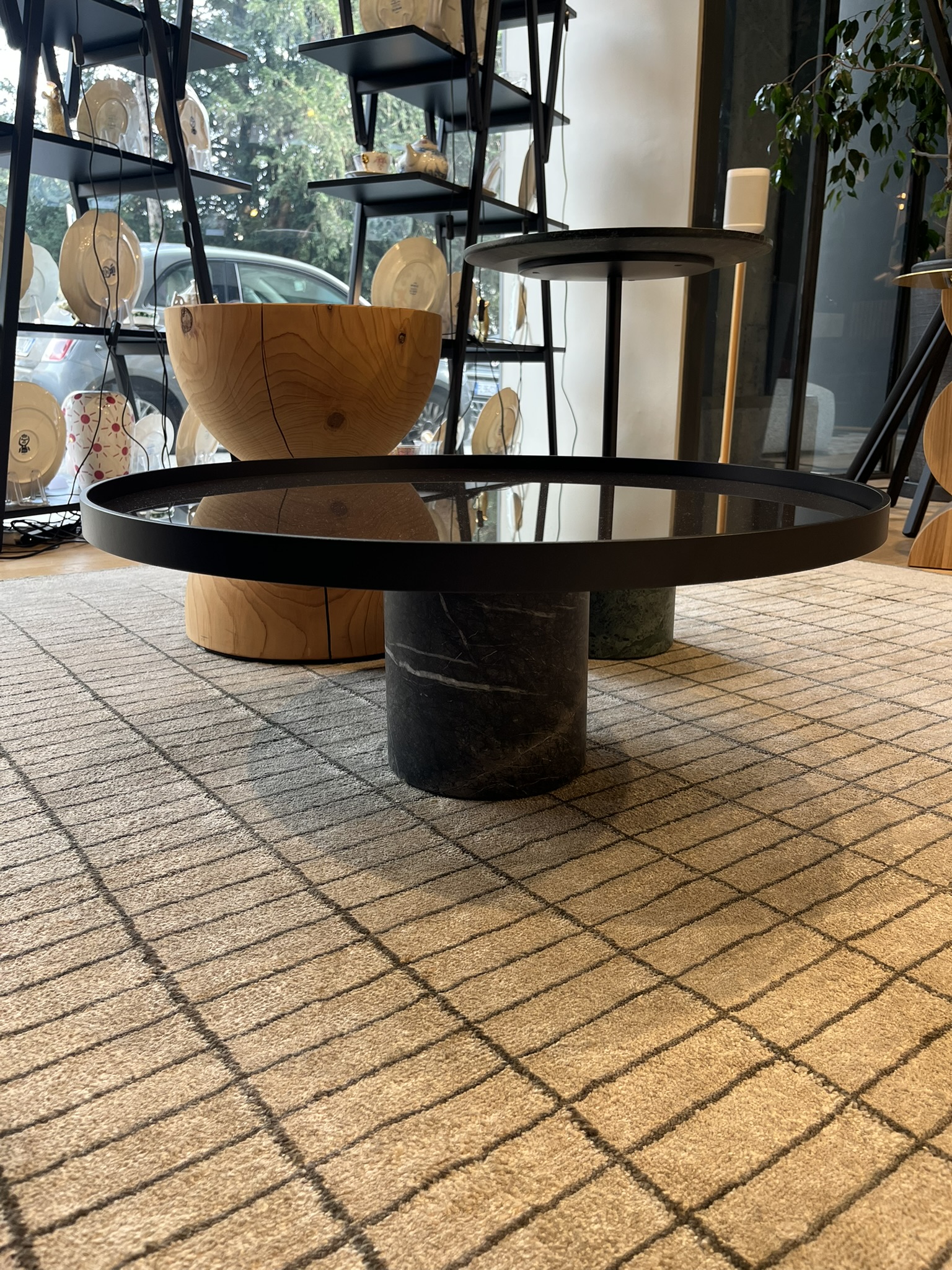 Piero Lissoni crea una serie di tavoli e tavolini di design caratterizzati da forme cilindriche e modulari. Il tavolino proposto ha base in marmo Grigio Carnico, piano in vetro Caffè e gambo e sottopiano in fusione di alluminio finitura opaco antracite. Il tavolino ha le dimensioni di cm ⌀70xH28.