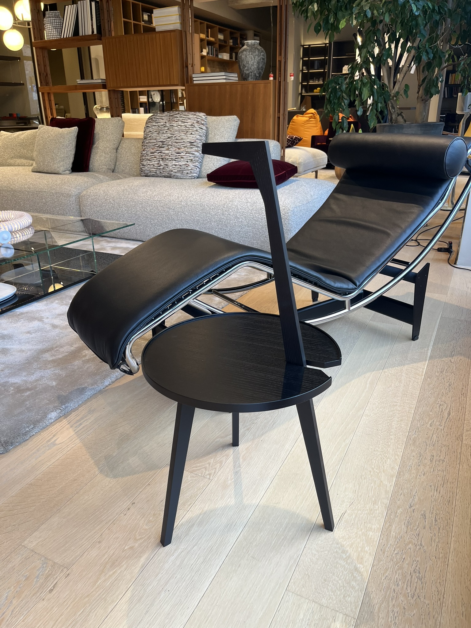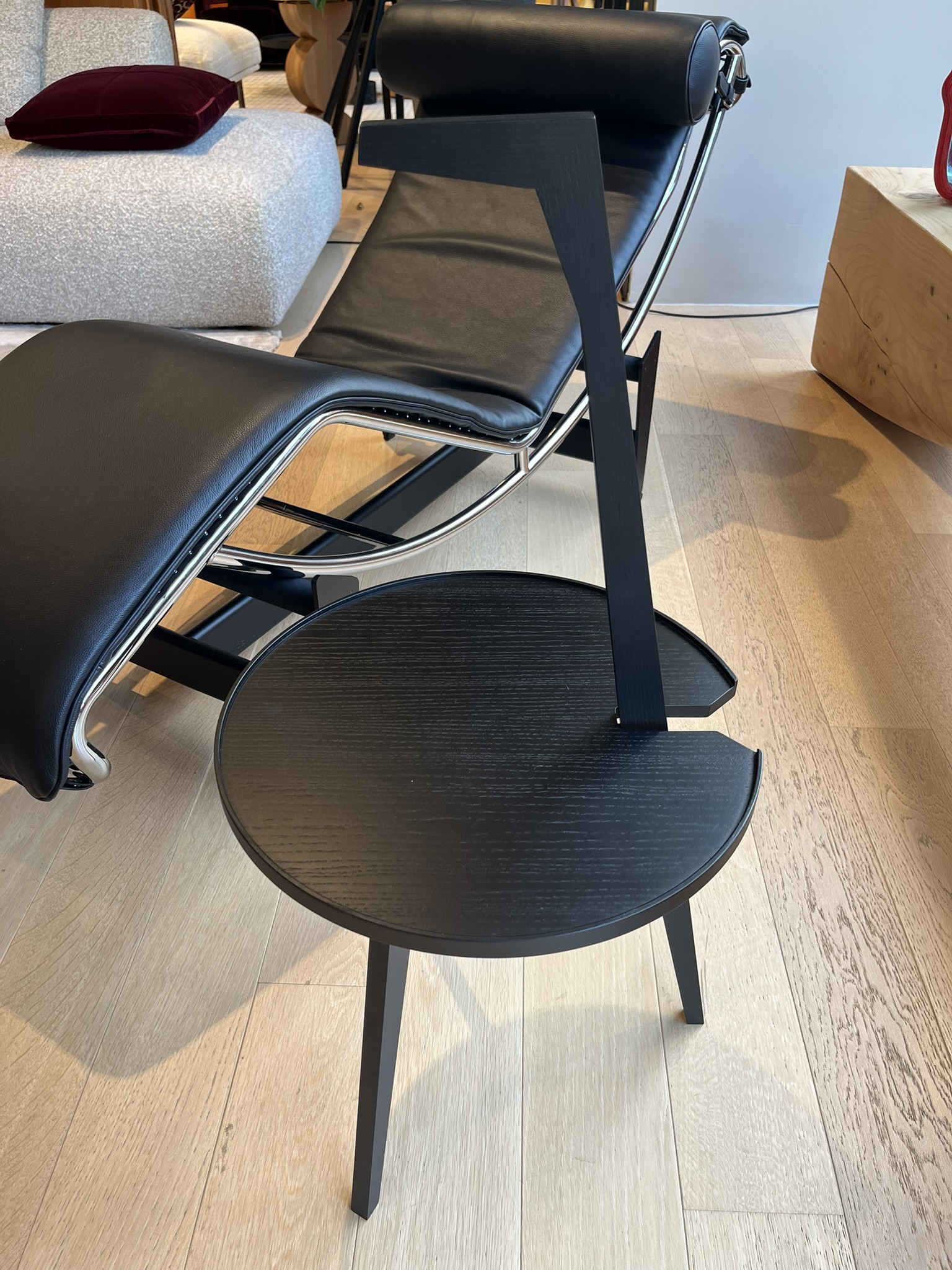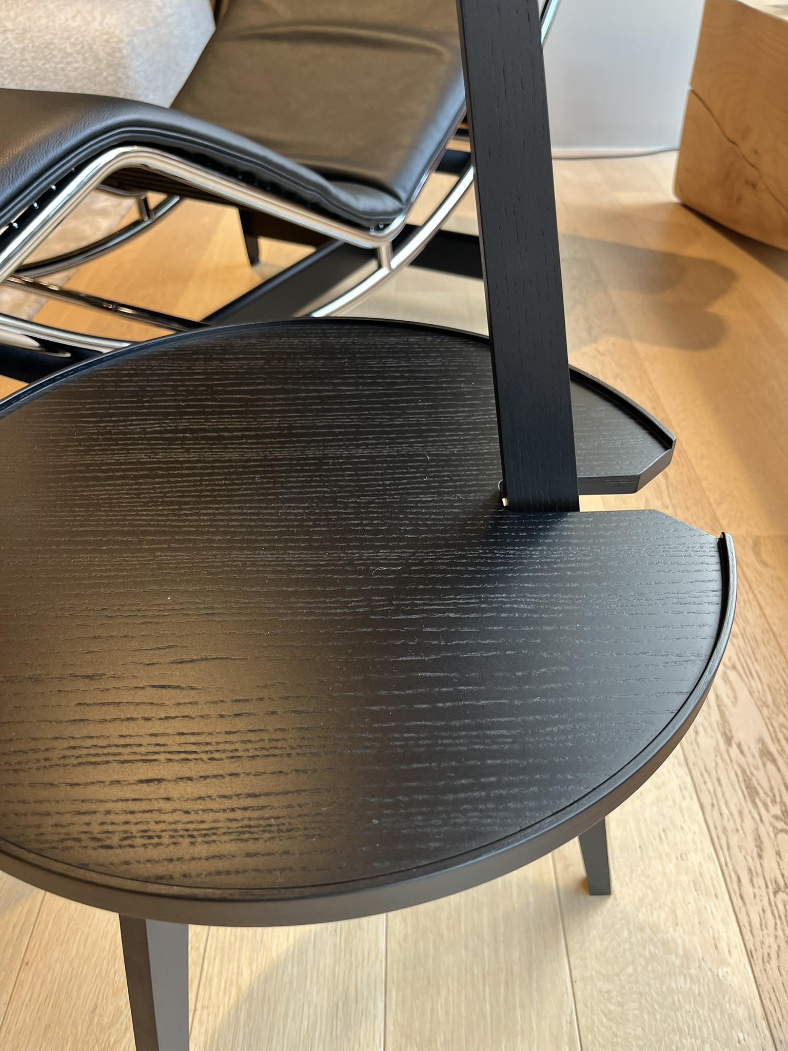 Iconico tavolino Cicognino di Cassina, con struttura in legno massello di frassino tinto nero e piano in multistrato multistrato fenolico con bordo in legno massello di frassino