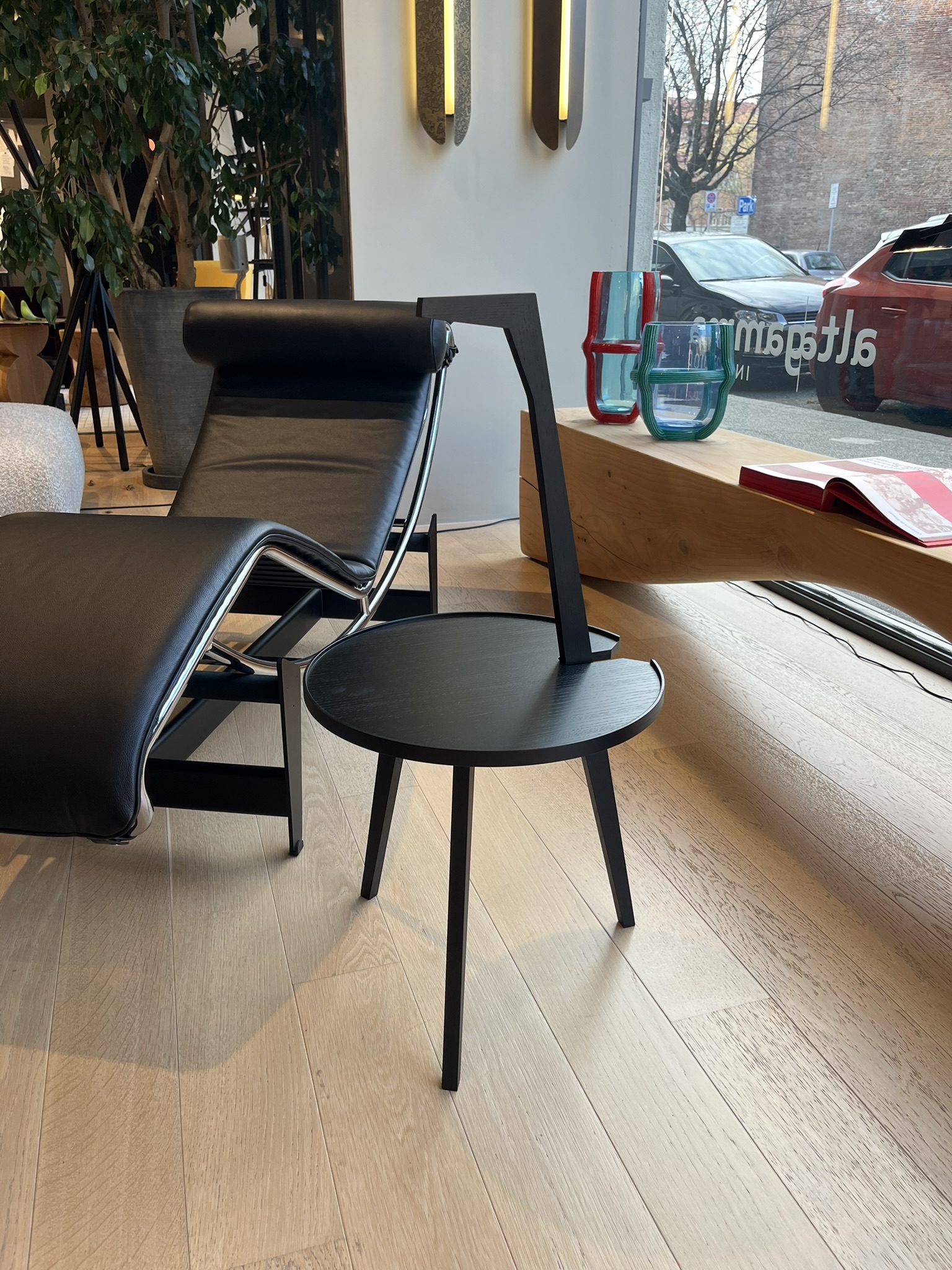 e impiallacciatura di frassino tinto nero. Il tavolino ha le dimensioni di cm 38x41xH80.
