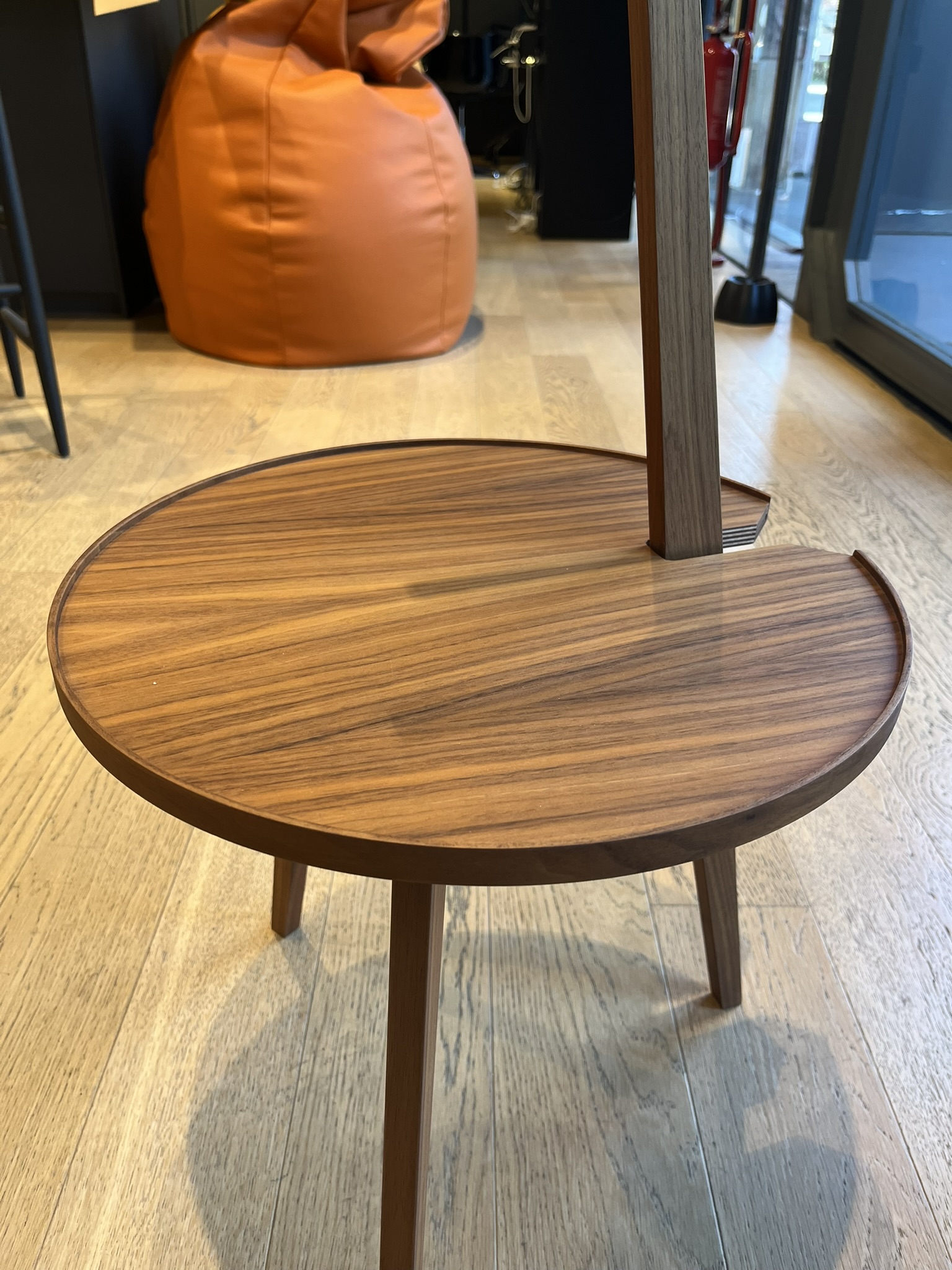 Iconico tavolino Cicognino di Cassina, con struttura in noce canaletto e piano in multistrato multistrato fenolico con bordo in legno massello di noce e impiallacciatura di noce. Il tavolino ha le dimensioni di cm 38x41xH80.
