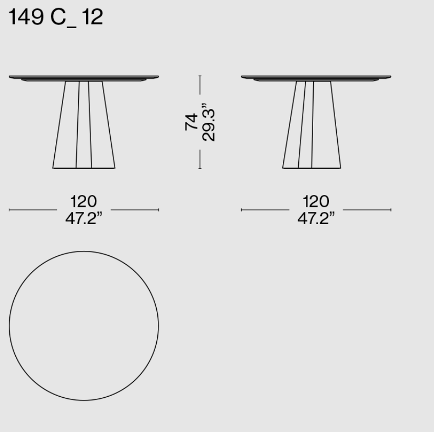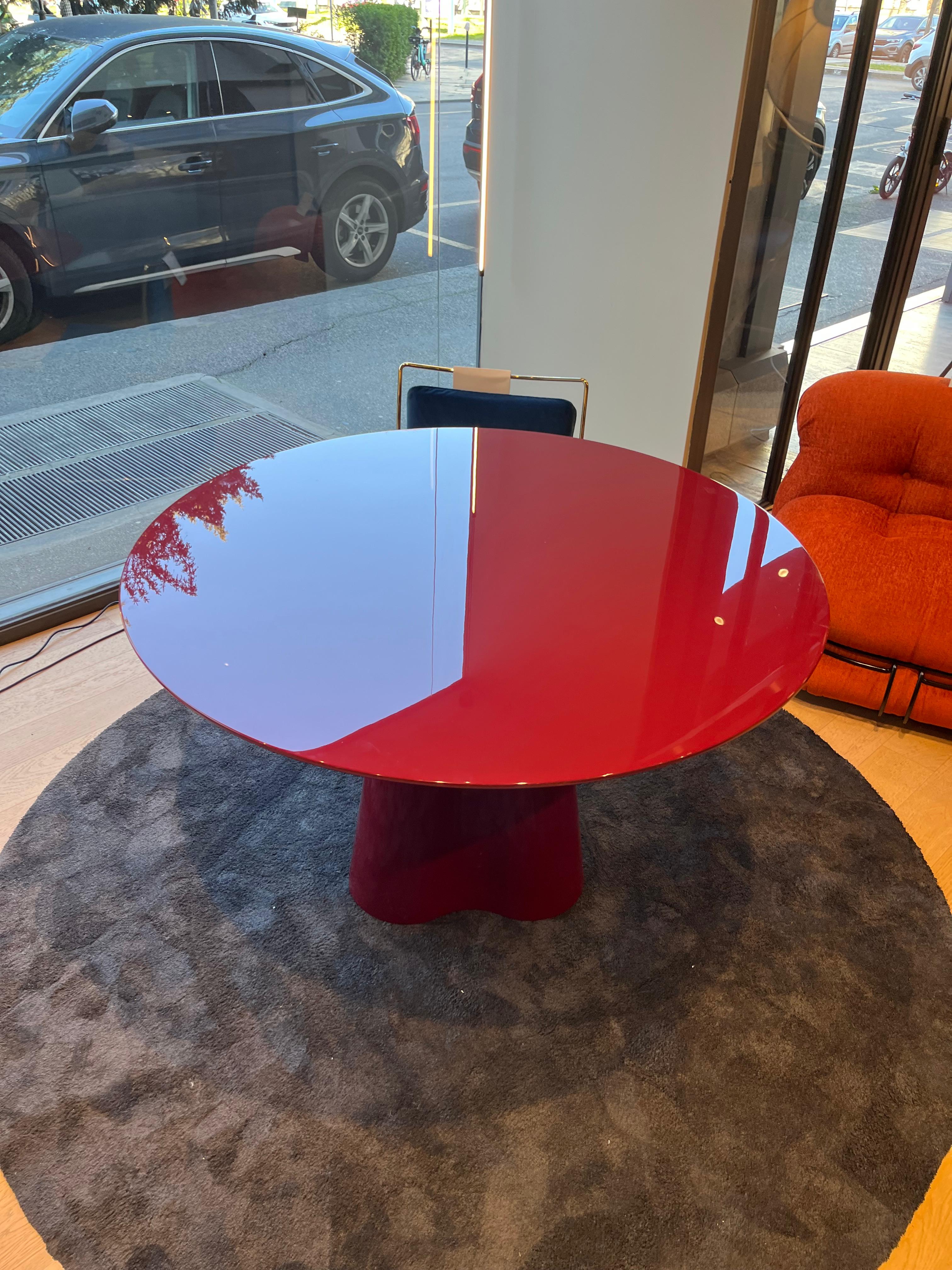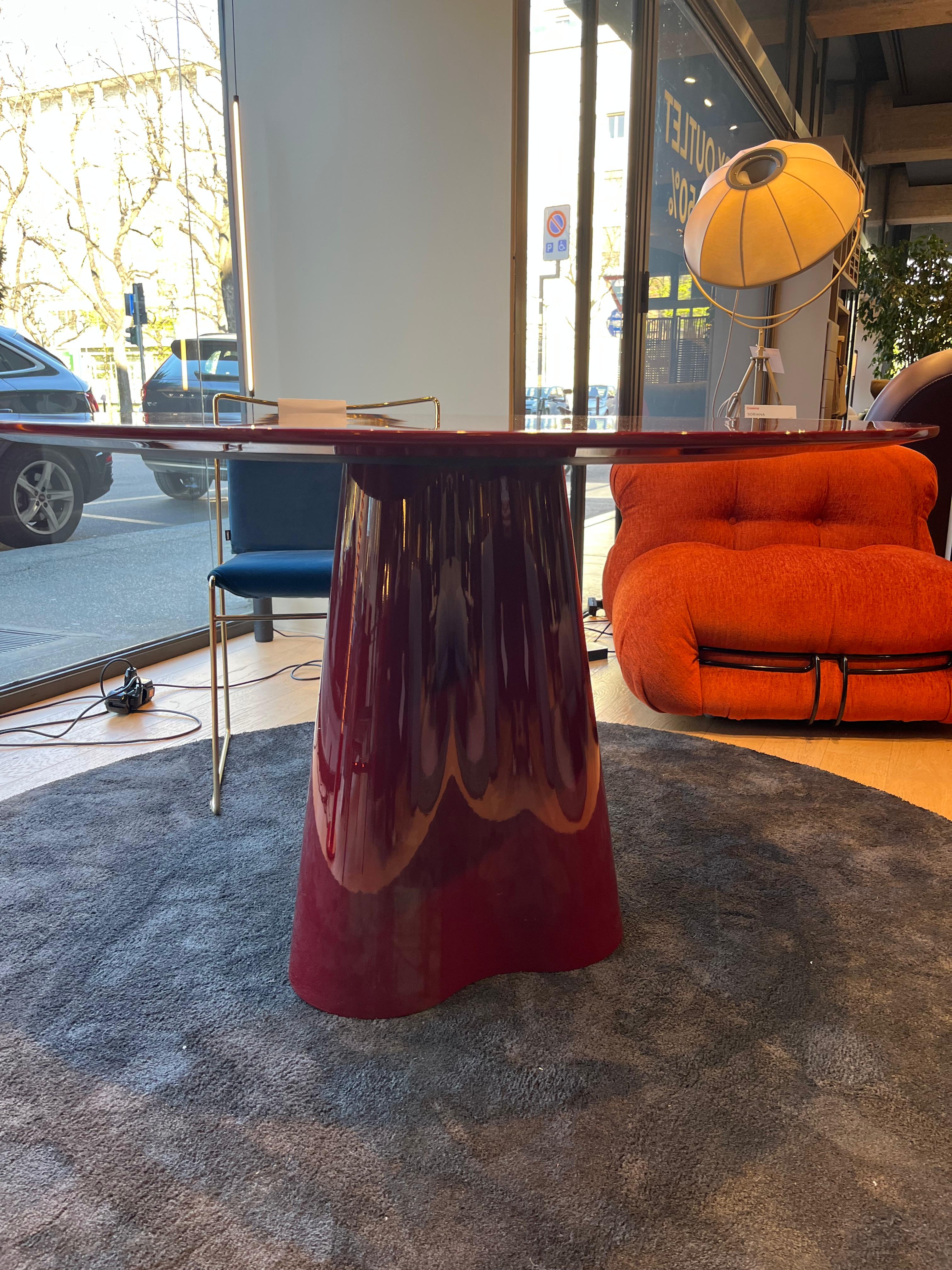 Linee leggere e sinuose celebrano la convivialità, in un tavolo di design che trae dalla natura l’ispirazione all’equilibrio. Disegnato da Ronan Bouroullec, il tavolo rotondo Treflo ha il basamento in Poliuretano rigido Bio laccato lucido, con percentuale di polioli derivanti da fonti biologiche, e piano in legno laccato lucido, entrambi in colore Pinot noir. Il tavolo ha le dimensioni di cm Ø120xH74.