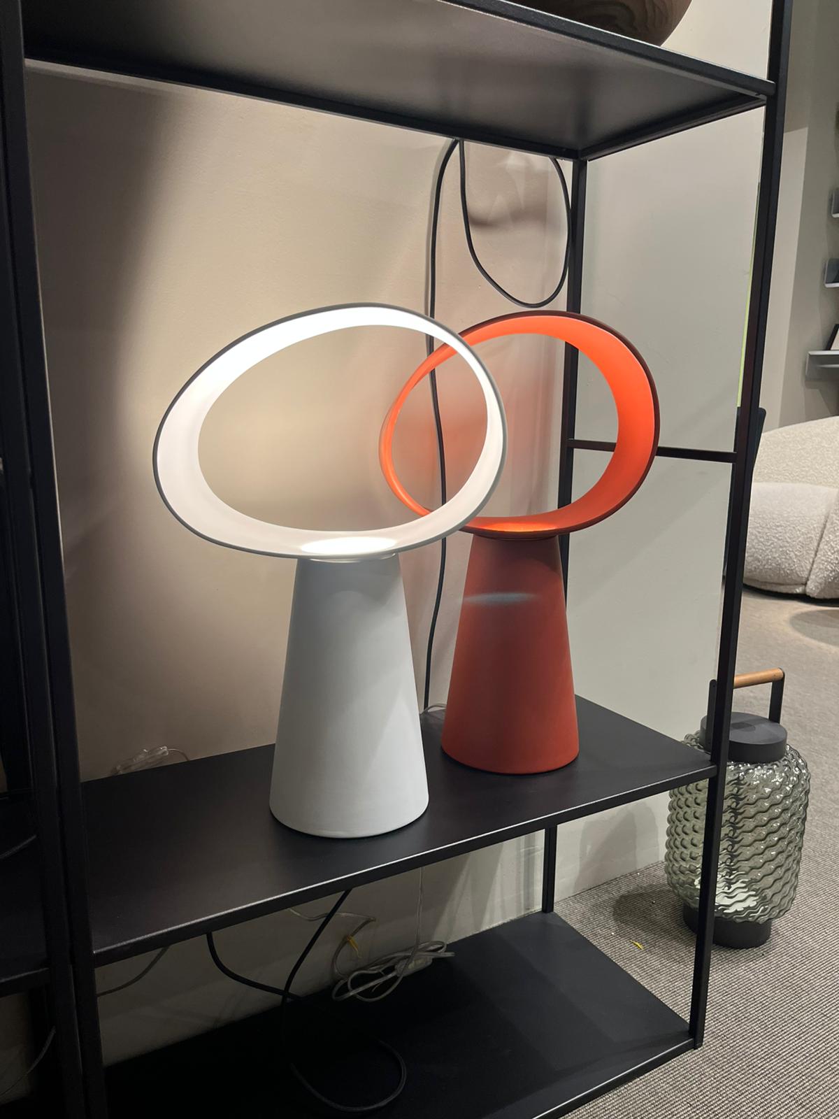 Lampada da tavolo in ceramica Eclipse. Disponibile nei colori Rosso Bloody Mary e Bianco. Le dimensioni della lampada sono di cm 32 x 13,5 x H51,5.