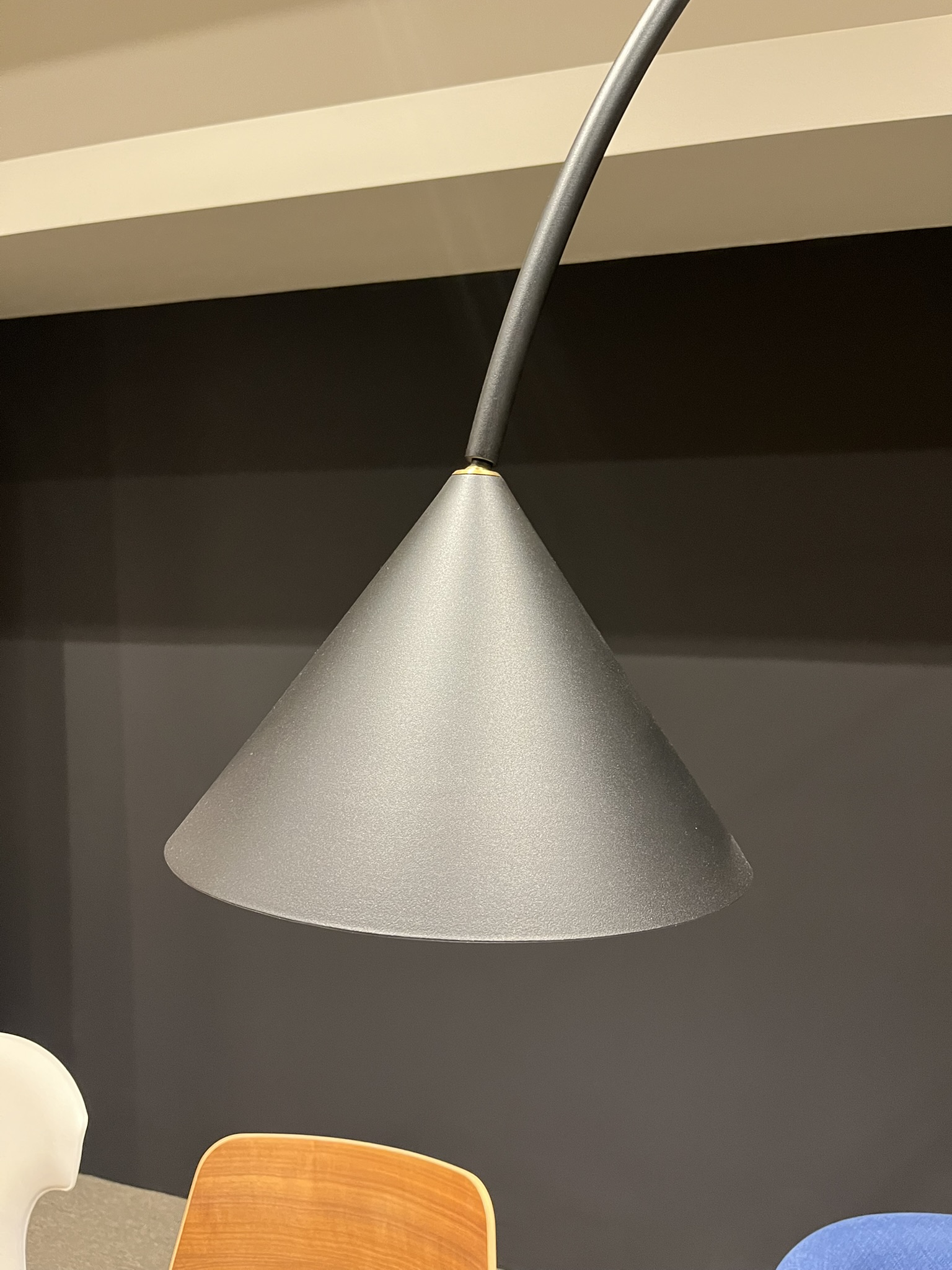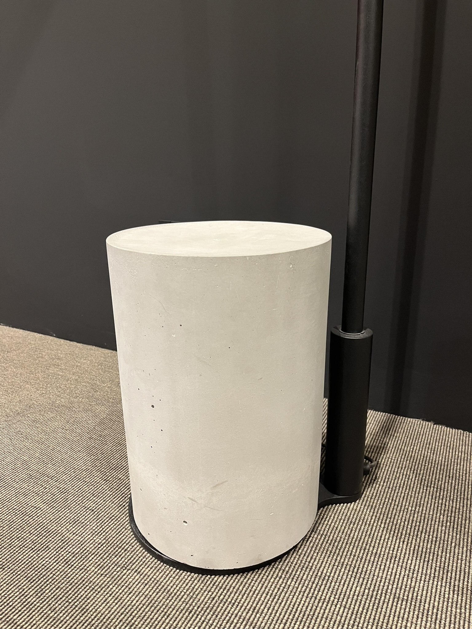 Lampada da terra con sruttura in metallo Nero Laccato Goffratino con contrappeso in calcestruzzo. Paralume e parabola sono regolabili. Le dimensioni della lampada sono di cm 215x34xH235.