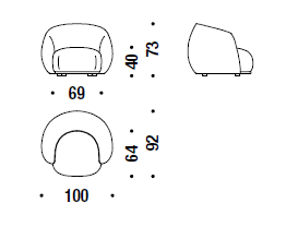 Lunghezza 100 cm, profondità 92 cm, altezza 73 cm