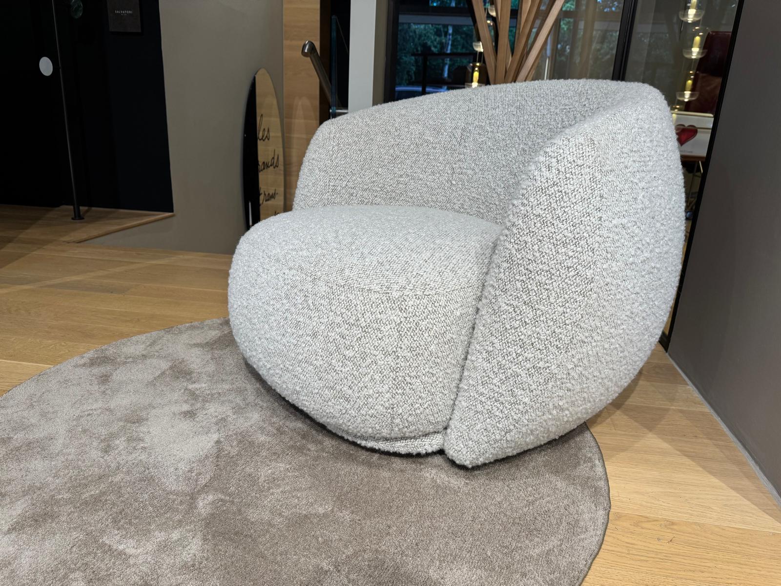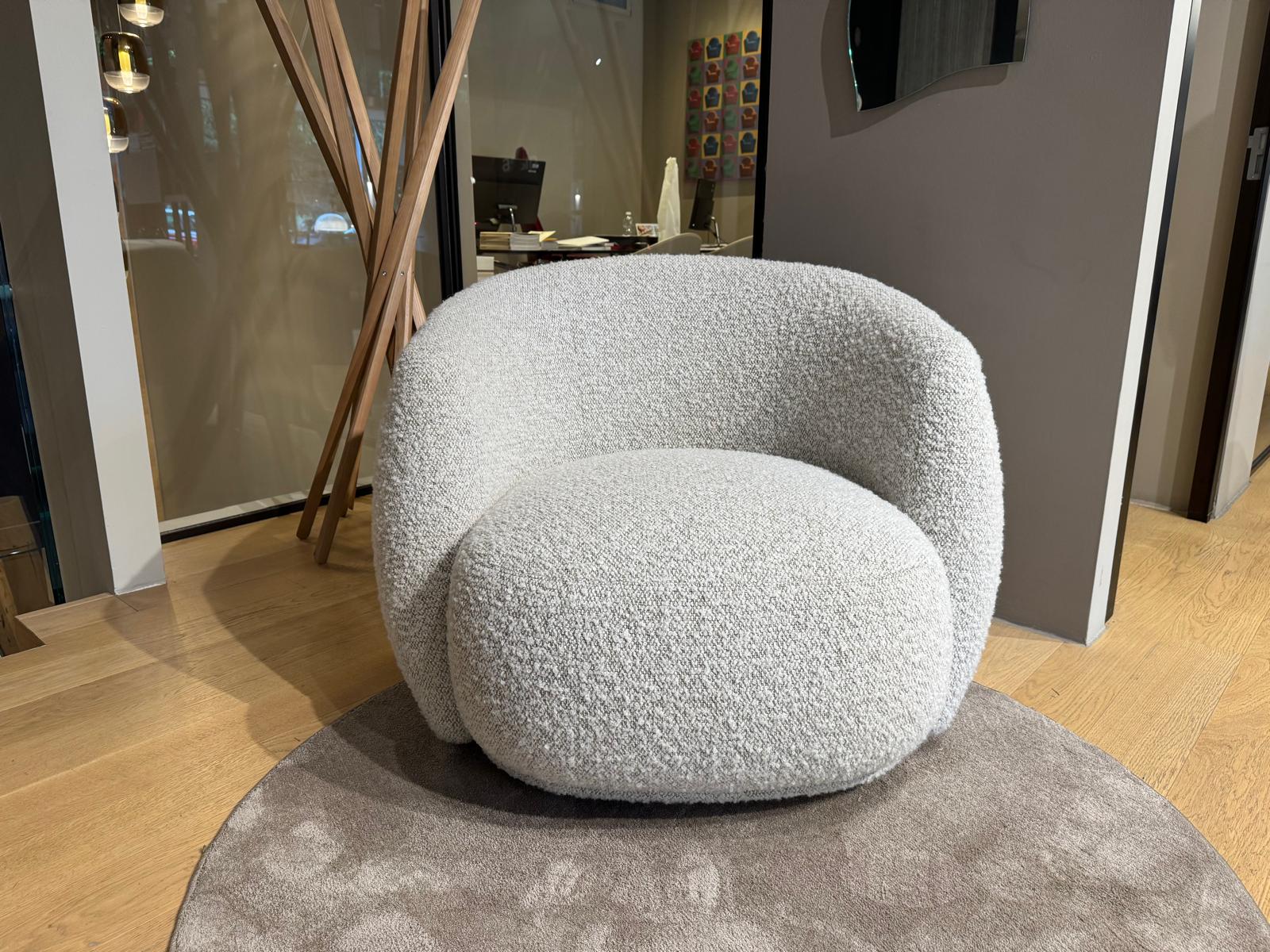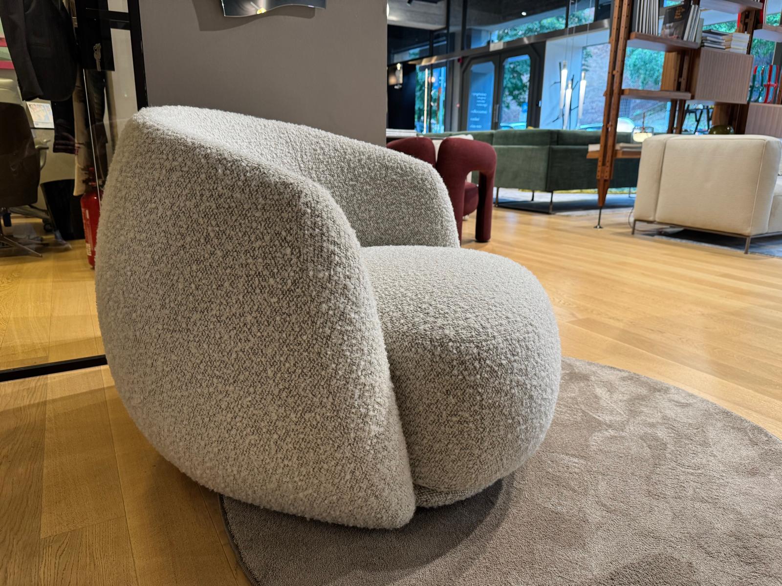 Poltrona Pacific, di Moroso, in A1026 Gorky co. 05/3 white-taupe. La poltrona, firmata Patricia Urquiola, crea intimità nella seduta quasi “protettiva”, per un’idea avvolgente di comodo relax. Con le sue forme rotonde ed oversize, rievoca le atmosfere distese e rilassate della West Coast americana, da cui prende il nome.