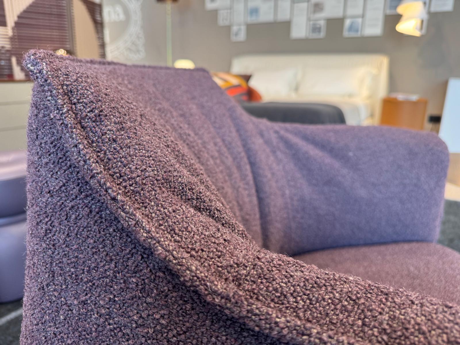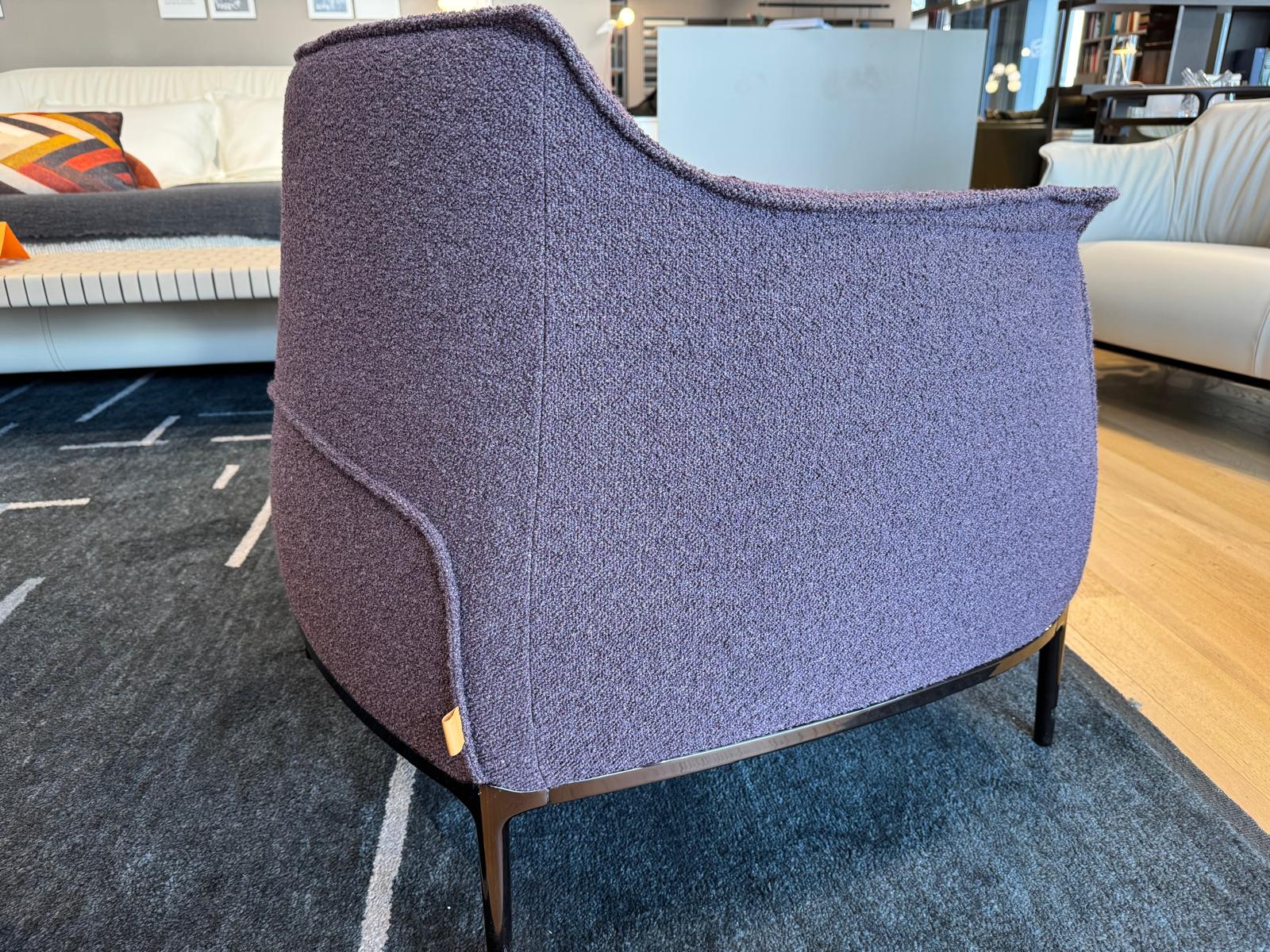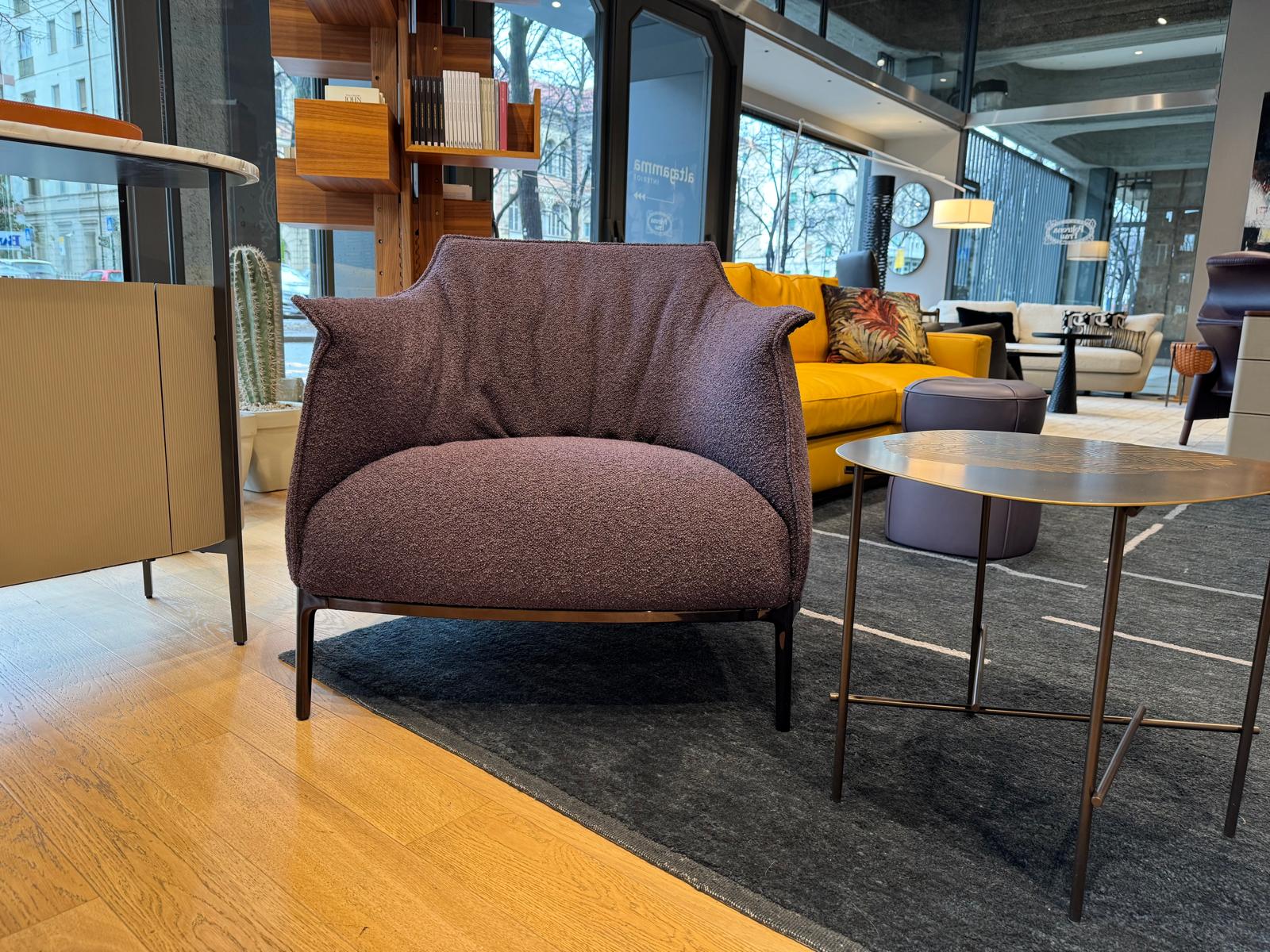 Poltrona Archibald, di Poltrona Frau, rivestita in tessuto Loop color Prugna e con struttura in acciaio. La struttura in acciaio della poltrona garantisce solidità, mentre l’imbottitura in poliuretano espanso e ovatta poliestere offre un’accoglienza soffice e avvolgente. I quattro piedi in alluminio donano alla Archibald leggerezza visiva e un’eleganza slanciata, rendendola perfetta in qualsiasi ambiente raffinato.