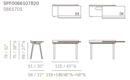 Lunghezza chiuso 119 cm, lunghezza aperto profondità 56, altezza 79 cm