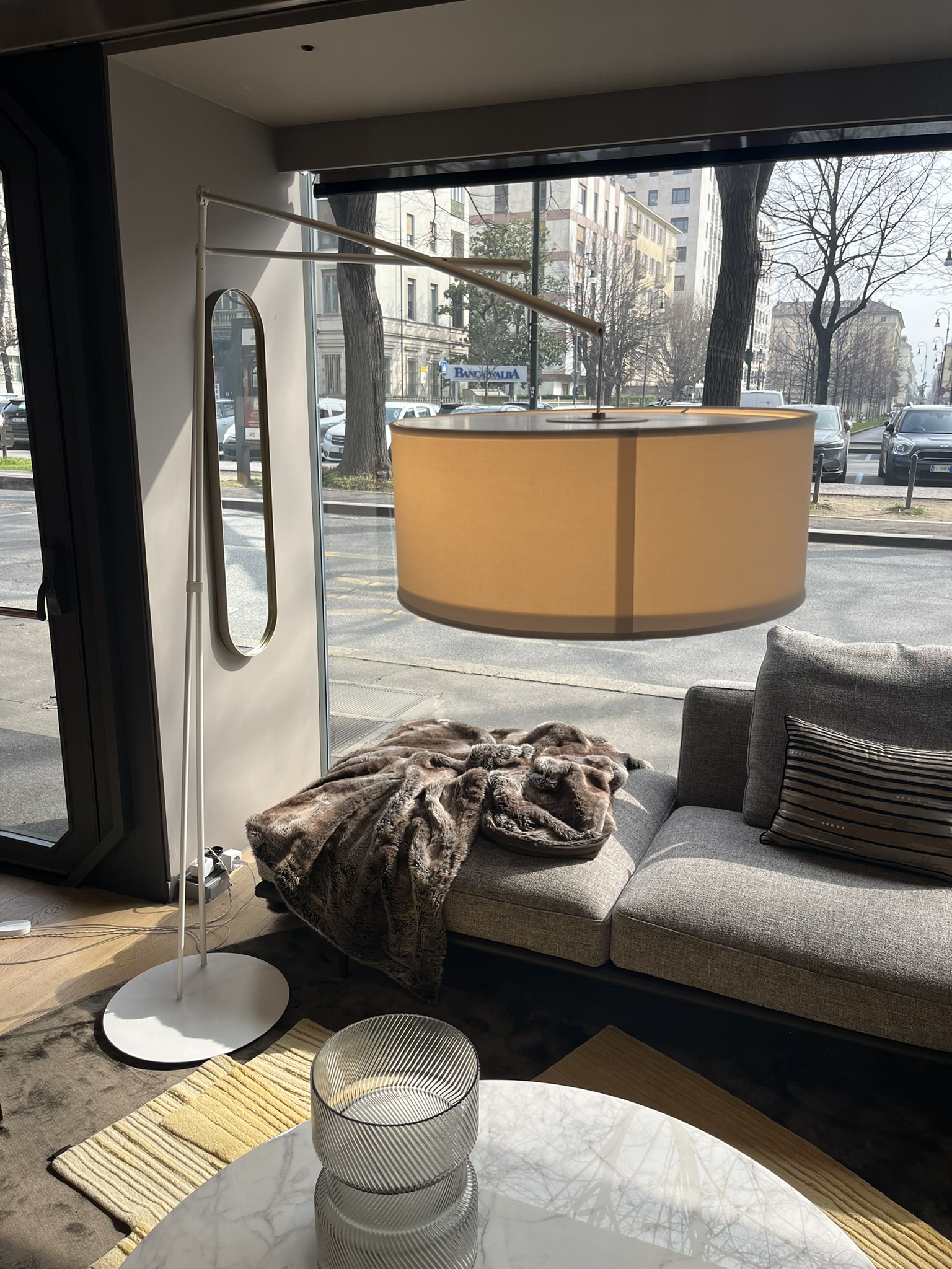 Lampada da terra a luce diffusa verso il basso di Prandina, studiata seguendo un approccio volto al risparmio energetico, dedicando particolare attenzione all’elemento innovativo. Il sistema di regolazione in altezza, discretamente alloggiato all’interno della struttura, lascia inalterato il disegno di Effimera, rendendola al contempo agevolmente fruibile come lampada da lettura o da salotto. La struttura in alluminio e acciaio verniciati e diffusore in metacrilato bianco opalino. Regolabile in altezza, 55 cm. Paralume in tessuto bianco.