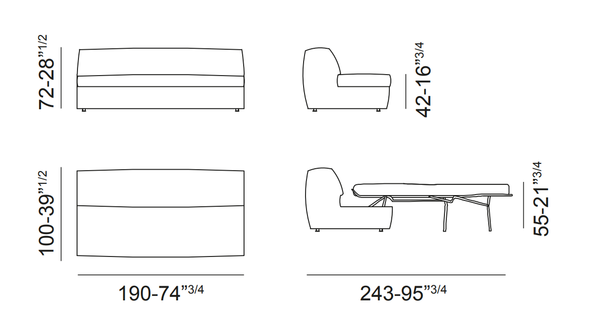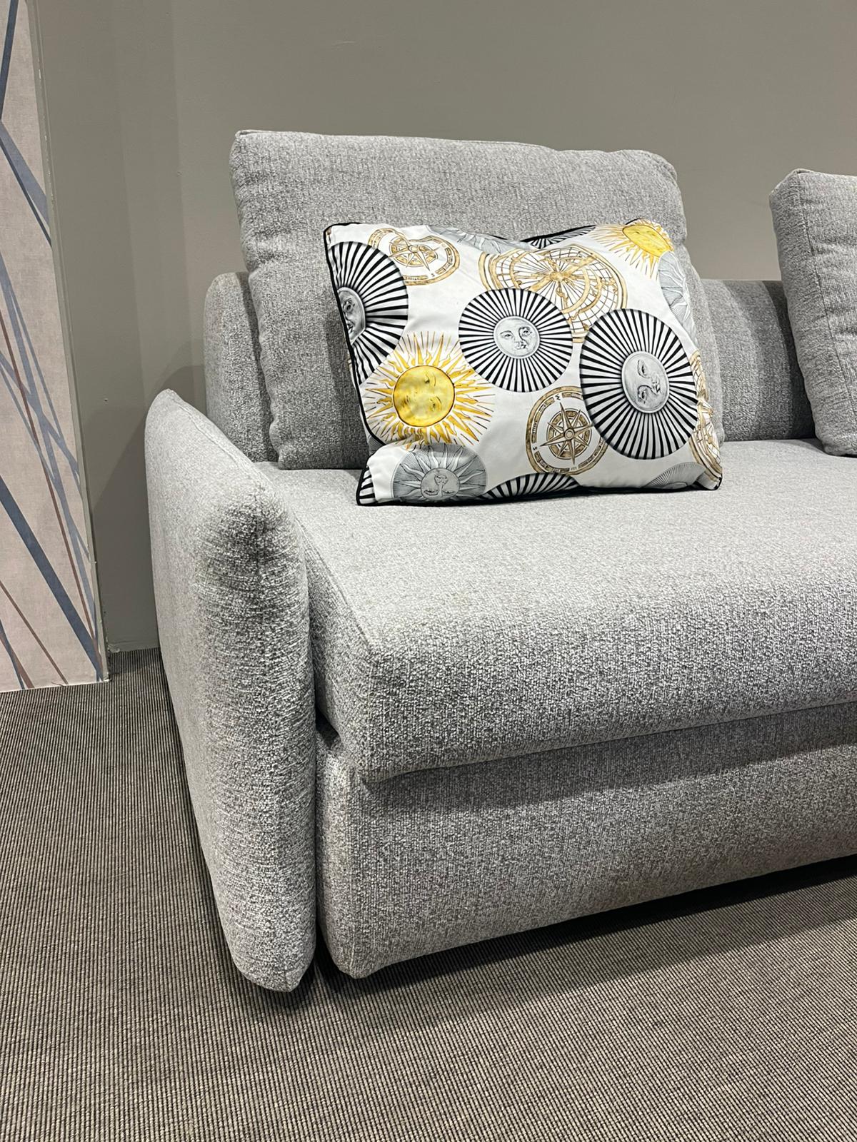 Misure del divano sono di cm 205x190xH10o, e di cm 205x243xH100 da aperto.