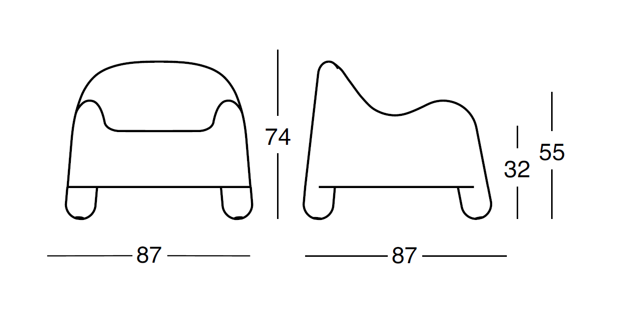 Le dimensioni della poltrona sono di cm 87x87xH74.